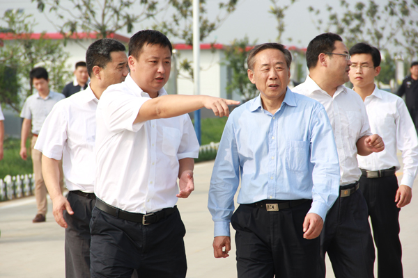 山東省省紀(jì)委原副書(shū)記、省委赴臨沂市督導(dǎo)組第一副組長(zhǎng)高守勤(右)聽(tīng)取總裁高進(jìn)華(左)作項(xiàng)目介紹