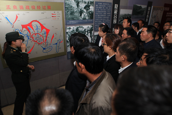 在孟良崮戰(zhàn)役紀(jì)念館,一件件歷史實(shí)物,一張張戰(zhàn)場(chǎng)照片,一個(gè)個(gè)感人故事,把大家?guī)У搅藨?zhàn)火紛飛的革命歲月,共同追憶那逝去的戰(zhàn)火硝煙,共同領(lǐng)略那撼人心魄的戰(zhàn)爭(zhēng)場(chǎng)景。透過(guò)沙盤(pán)展示、歷史圖片、文獻(xiàn)史料,大家真切感受到抗戰(zhàn)時(shí)期沂蒙人民踴躍支前、無(wú)私奉獻(xiàn)的偉大精神。