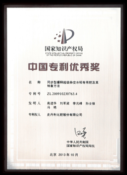 近日,由世界知識產(chǎn)權(quán)組織與國家知識產(chǎn)權(quán)局共同舉辦的第十五屆中國專利獎評審結(jié)果揭曉,公司申報的“同步型緩釋超級雜交水稻專用肥及其制備方法”被國家知識產(chǎn)權(quán)局授予第十五屆中國專利優(yōu)秀獎。
