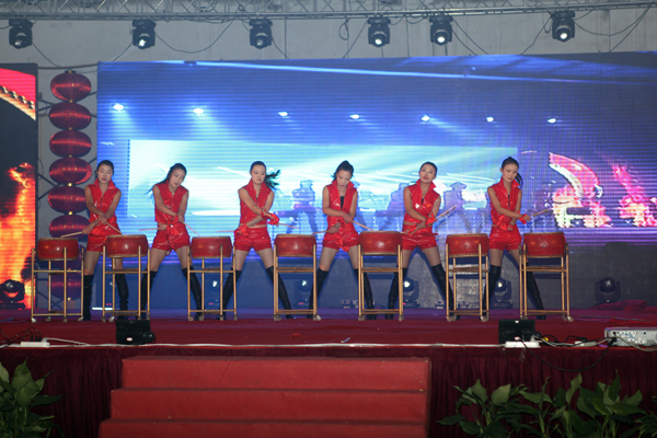 山東平原公司、河南遂平公司表演的打擊樂《鼓舞明天》