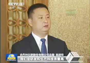 11月18日晚,總裁高進華接受中央電視臺《新聞聯(lián)播》采訪,就十八屆三中全會審議通過的《中共中央關于全面深化改革若干重大問題的決定》中要緊緊圍繞市場在資源配置中起決定性作用,深化經濟體制改革的相關問題闡述了觀點??偛酶哌M華表示,《決定》中提出了加快土地流轉,這將促進高效生態(tài)農業(yè)快速發(fā)展,對于我們這個行業(yè)來說,帶來了機遇也提出了挑戰(zhàn)。我們會研發(fā)和生產科技含量高,對環(huán)境友好的優(yōu)質肥料,讓廣大農民實現(xiàn)幸福安康的生活。