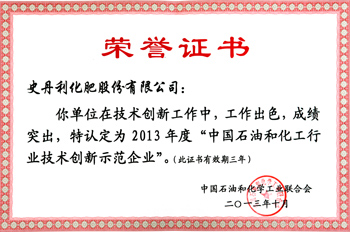 大會隆重表彰了2013年度石化聯(lián)合會科學(xué)技術(shù)獎獲獎項目單位及代表。經(jīng)石化聯(lián)合會科技獎勵評審委員會終審評定,決定授予2013年度中國石油和化學(xué)工業(yè)聯(lián)合會科學(xué)技術(shù)獎269項,其中技術(shù)發(fā)明獎50項、科技進(jìn)步獎219項,大會同時發(fā)布了2013年度新認(rèn)定的27家“中國化工行業(yè)技術(shù)創(chuàng)新示范企業(yè)”名單。史丹利化肥股份有限公司被授予“中國化工行業(yè)技術(shù)創(chuàng)新示范企業(yè)”稱號。