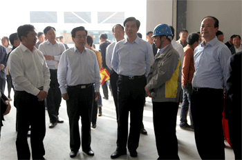 商丘市委書記陶明倫(左三)、市政協(xié)主席吳宏蔚(左二)、市委副書記周樹群(右一)、寧陵公司總經(jīng)理信書寶(右二)在觀摩現(xiàn)場
