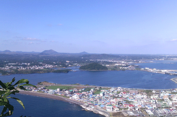 欣賞完了古代宮廷和近代戰(zhàn)爭(zhēng)武器,我們乘機(jī)飛赴被稱為“東方夏威夷”的濟(jì)州島。濟(jì)州島美不虛傳,這里有空曠蔚藍(lán)的天空,起伏曲折的道路,高聳入云的椰子樹,掛滿枝頭的桔子園,還有可以俯瞰濟(jì)州島的城山日出峰,從奇巖峭壁順流而下的天地淵瀑布……