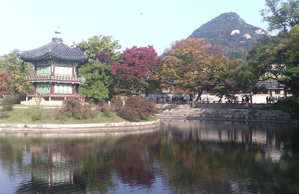 此次韓國(guó)之旅的第一站是景福宮,走在遍布漢字的古代宮廷,聽著腳踩沙子的聲音,真有點(diǎn)分不清是在異域,還是在祖國(guó)。離開景福宮,驅(qū)車前往戰(zhàn)爭(zhēng)紀(jì)念廣場(chǎng)。雖是深秋,但當(dāng)客車行駛在被綠蔭環(huán)抱的道路時(shí),那沁人心脾的綠,還是讓人心醉。在戰(zhàn)爭(zhēng)紀(jì)念廣場(chǎng),一側(cè)是嬉戲的孩童、飛翔的和平鴿,一側(cè)是朝鮮戰(zhàn)爭(zhēng)期間使用過的各種武器,這一切給人帶來的心靈震顫與情感沖擊是那樣的強(qiáng)烈。