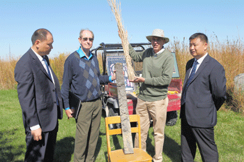 9月24日上午,普渡大學(xué)科學(xué)實(shí)驗(yàn)農(nóng)場主任吉姆先生向總裁高進(jìn)華(右一)、