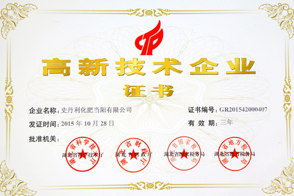 史丹利化肥當(dāng)陽公司獲得“國家級高新技術(shù)企業(yè)”榮譽(yù)稱號