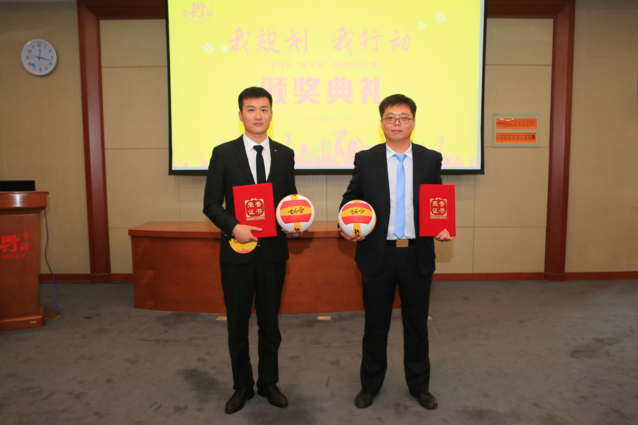 經(jīng)過精彩激烈的角逐,技術(shù)中心趙超、遂平公司孫敬豪憑借出色的表現(xiàn),榮獲“一等獎”。除了誘人的現(xiàn)金獎勵以外,更有郎平簽名排球一個!