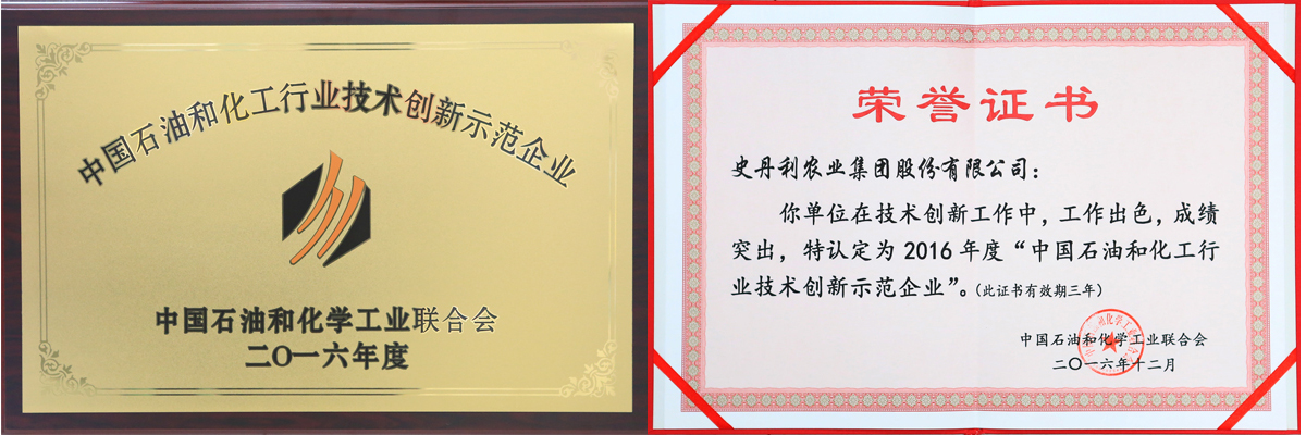 史丹利榮獲2016年度“中國石油和化工行業(yè)技術(shù)創(chuàng)新示范企業(yè)”稱號(hào)